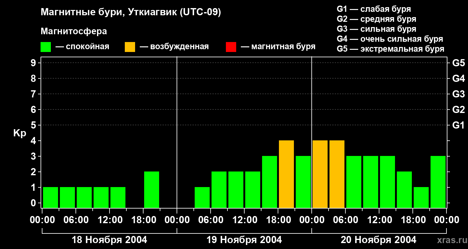Магнитные бури в Уткиагвике — 20 ноября 2004 года