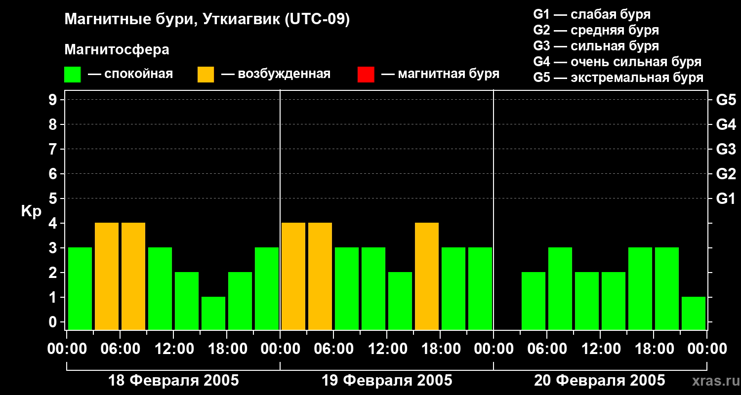 Магнитные бури в Уткиагвике — 20 февраля 2005 года