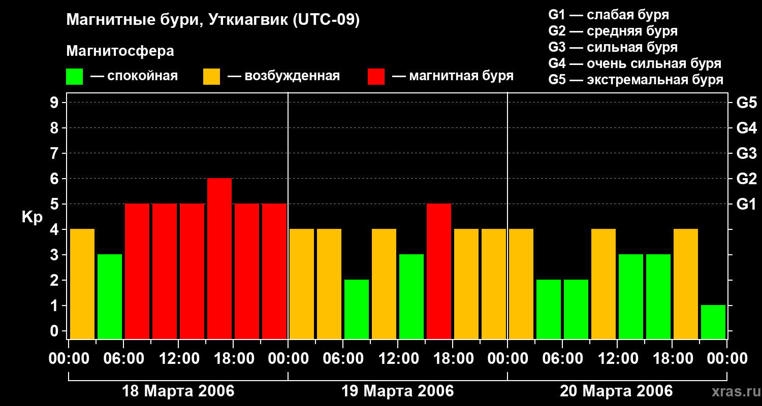 Магнитные бури в Уткиагвике — 20 марта 2006 года