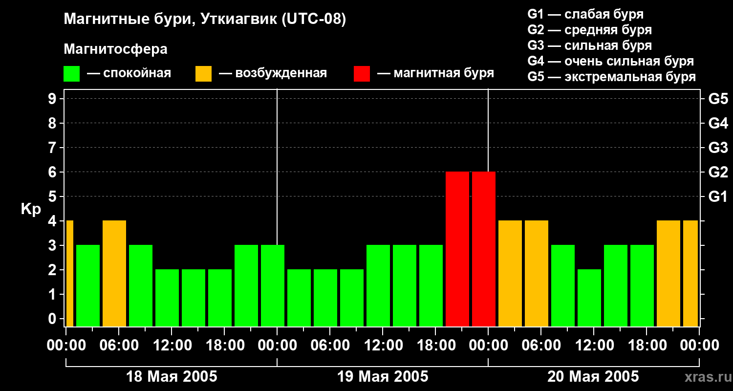 Магнитные бури в Уткиагвике — 20 мая 2005 года