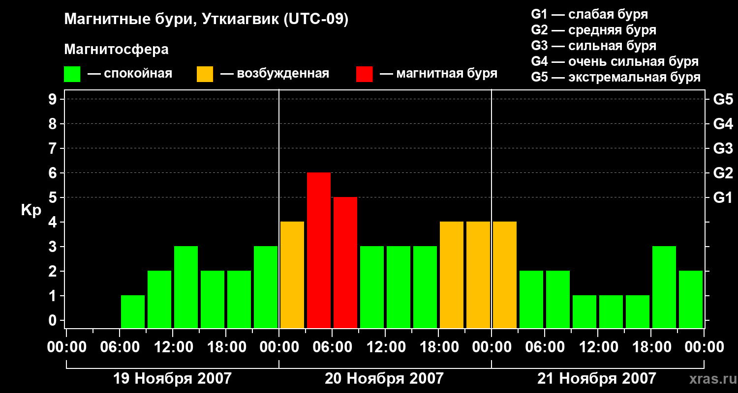 Магнитные бури в Уткиагвике — 21 ноября 2007 года