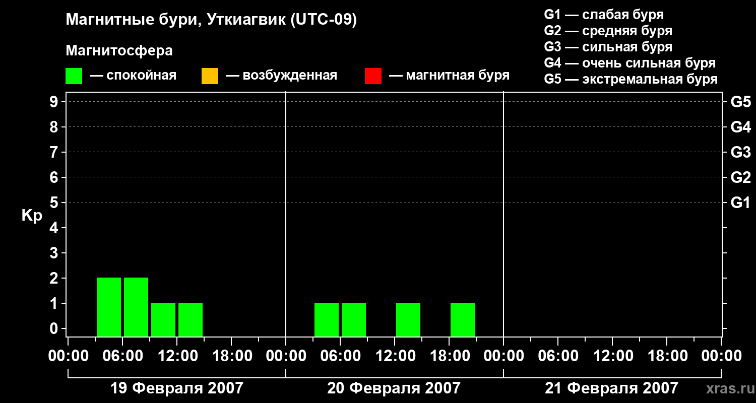 Магнитные бури в Уткиагвике — 21 февраля 2007 года