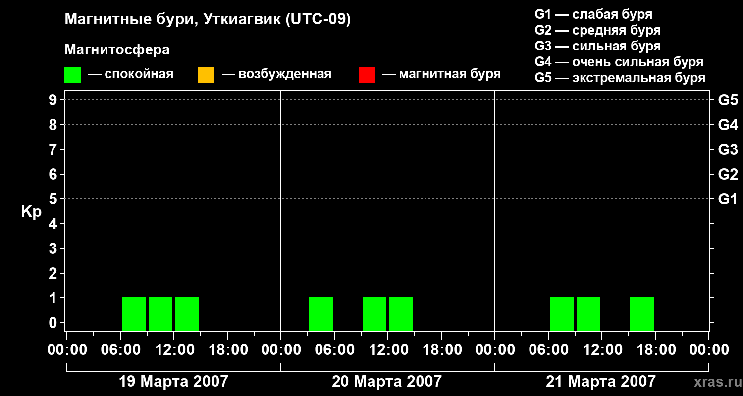 Магнитные бури в Уткиагвике — 21 марта 2007 года