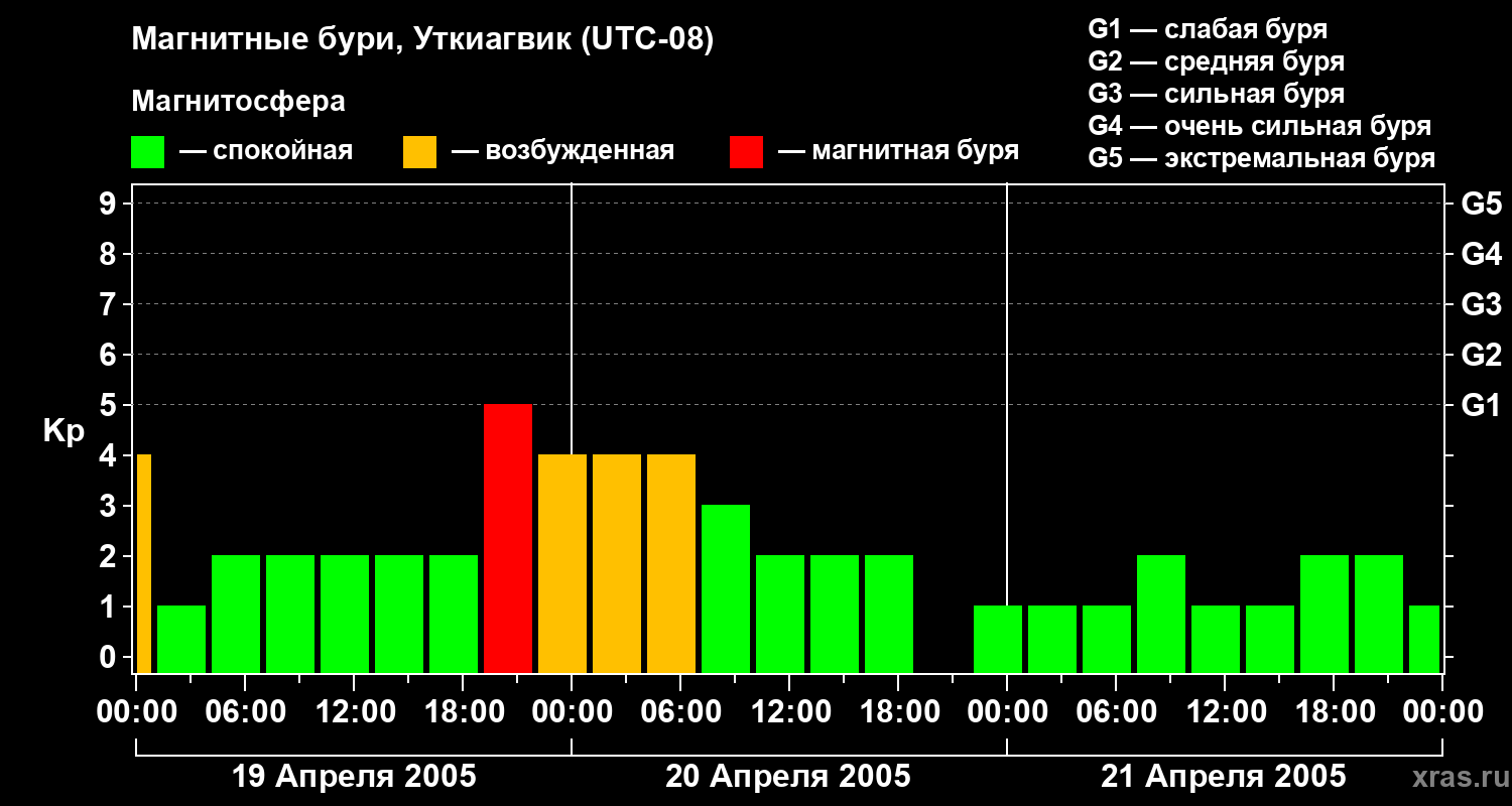 Магнитные бури в Уткиагвике — 21 апреля 2005 года