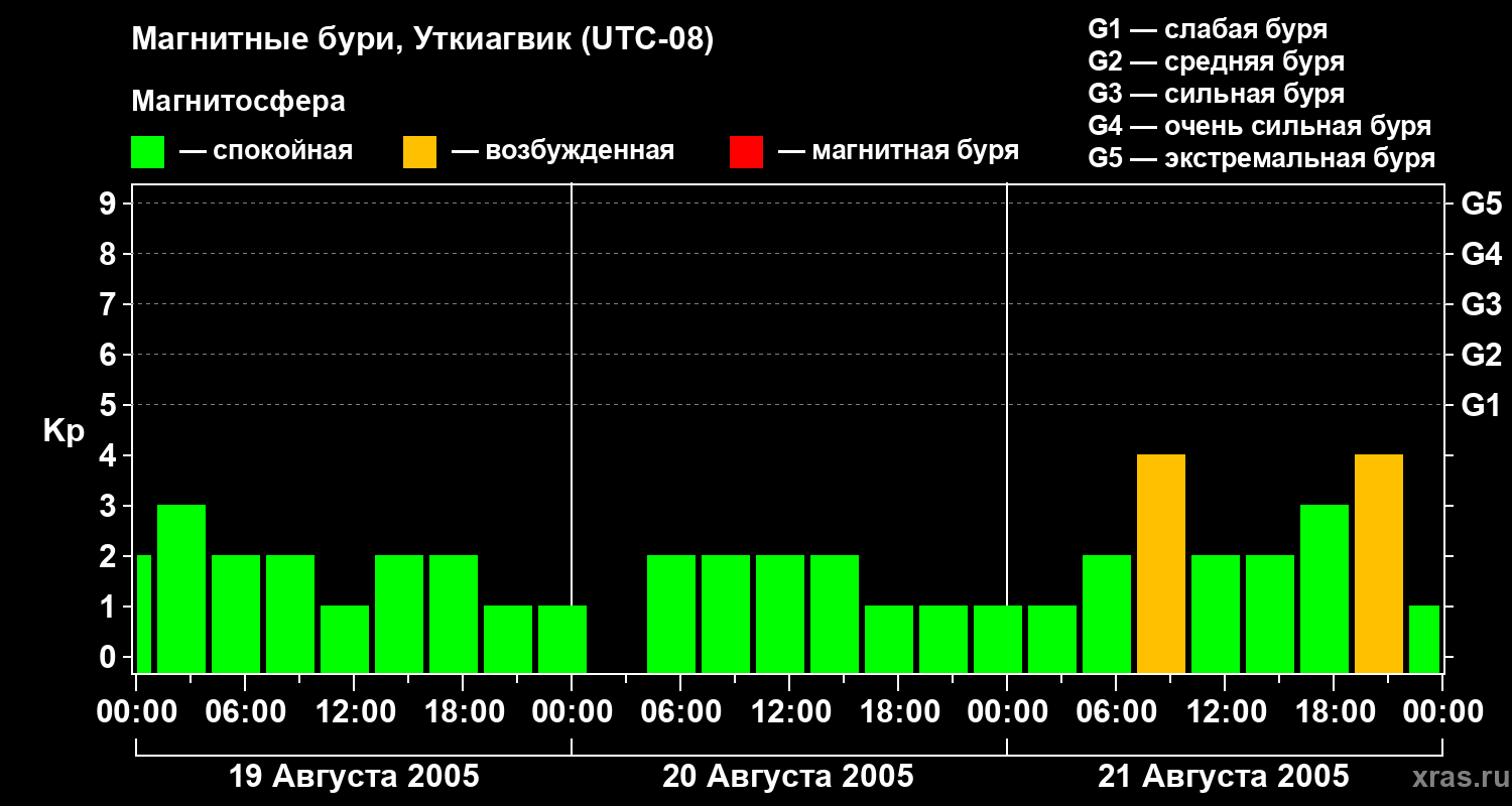 Магнитные бури в Уткиагвике — 21 августа 2005 года
