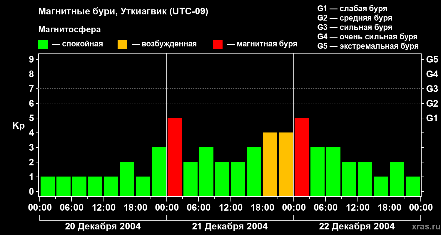 Магнитные бури в Уткиагвике — 22 декабря 2004 года