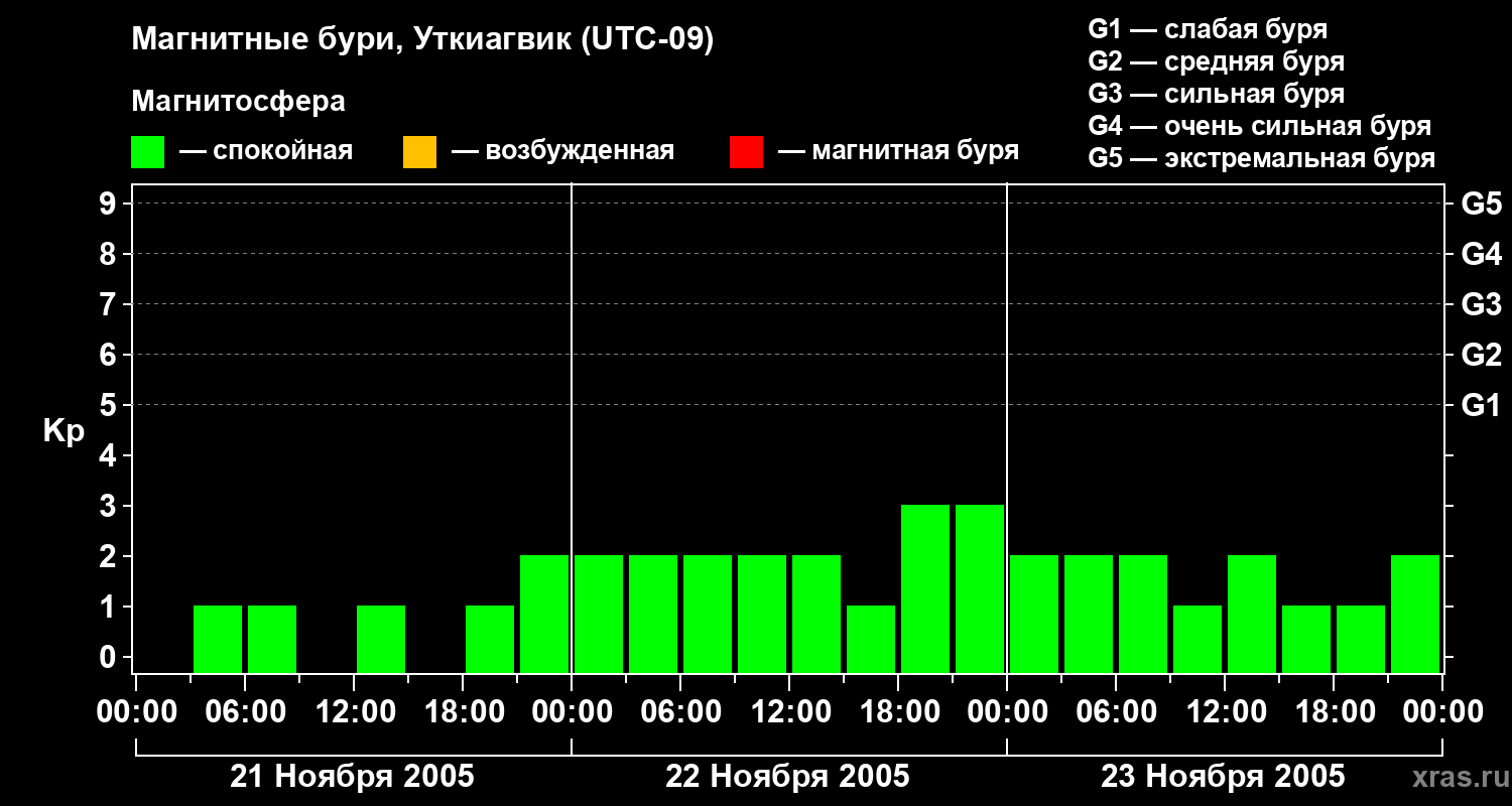 Магнитные бури в Уткиагвике — 23 ноября 2005 года