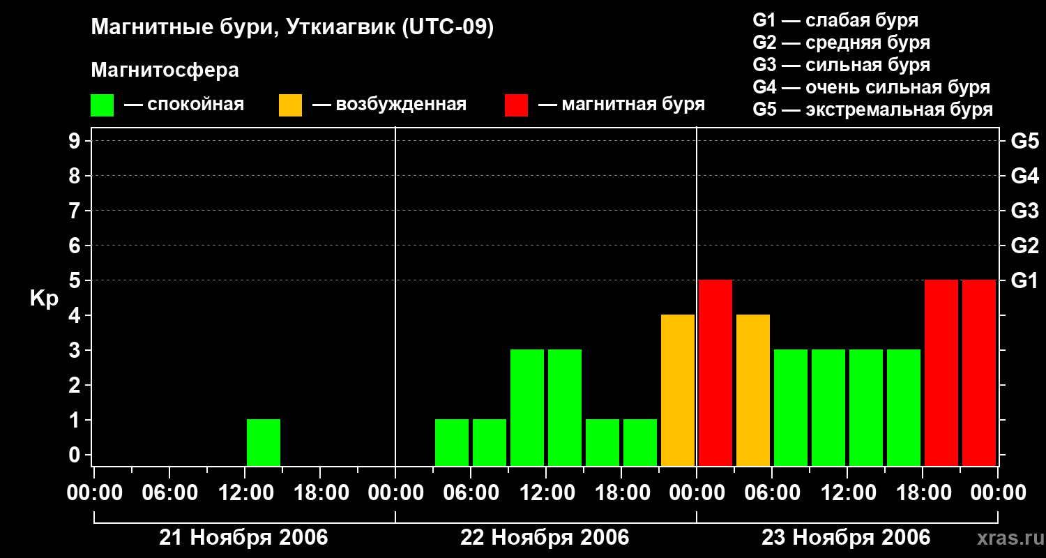 Магнитные бури в Уткиагвике — 23 ноября 2006 года