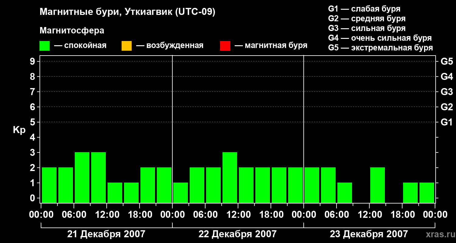 Магнитные бури в Уткиагвике — 23 декабря 2007 года
