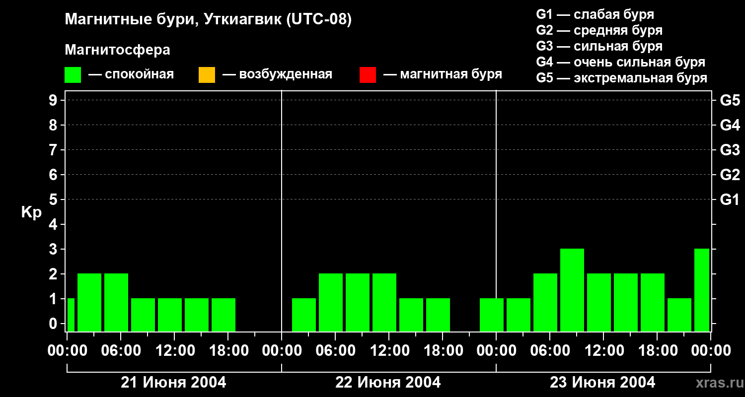 Магнитные бури в Уткиагвике — 23 июня 2004 года