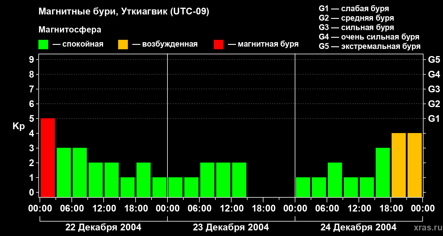 Магнитные бури в Уткиагвике — 24 декабря 2004 года
