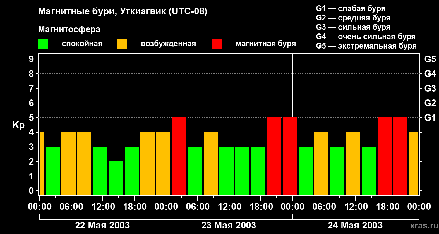 Магнитные бури в Уткиагвике — 24 мая 2003 года