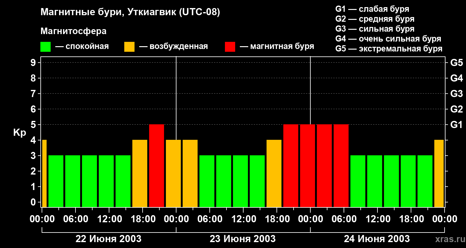 Магнитные бури в Уткиагвике — 24 июня 2003 года