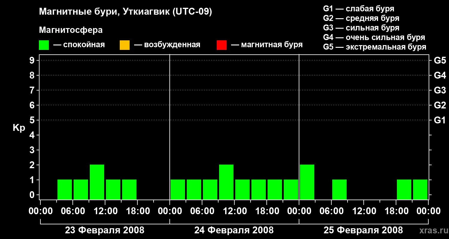 Магнитные бури в Уткиагвике — 25 февраля 2008 года