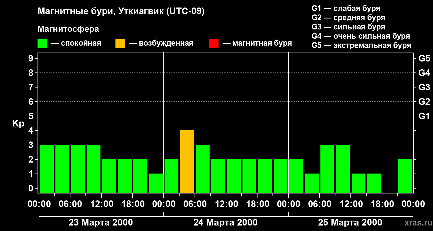 Магнитные бури в Уткиагвике — 25 марта 2000 года
