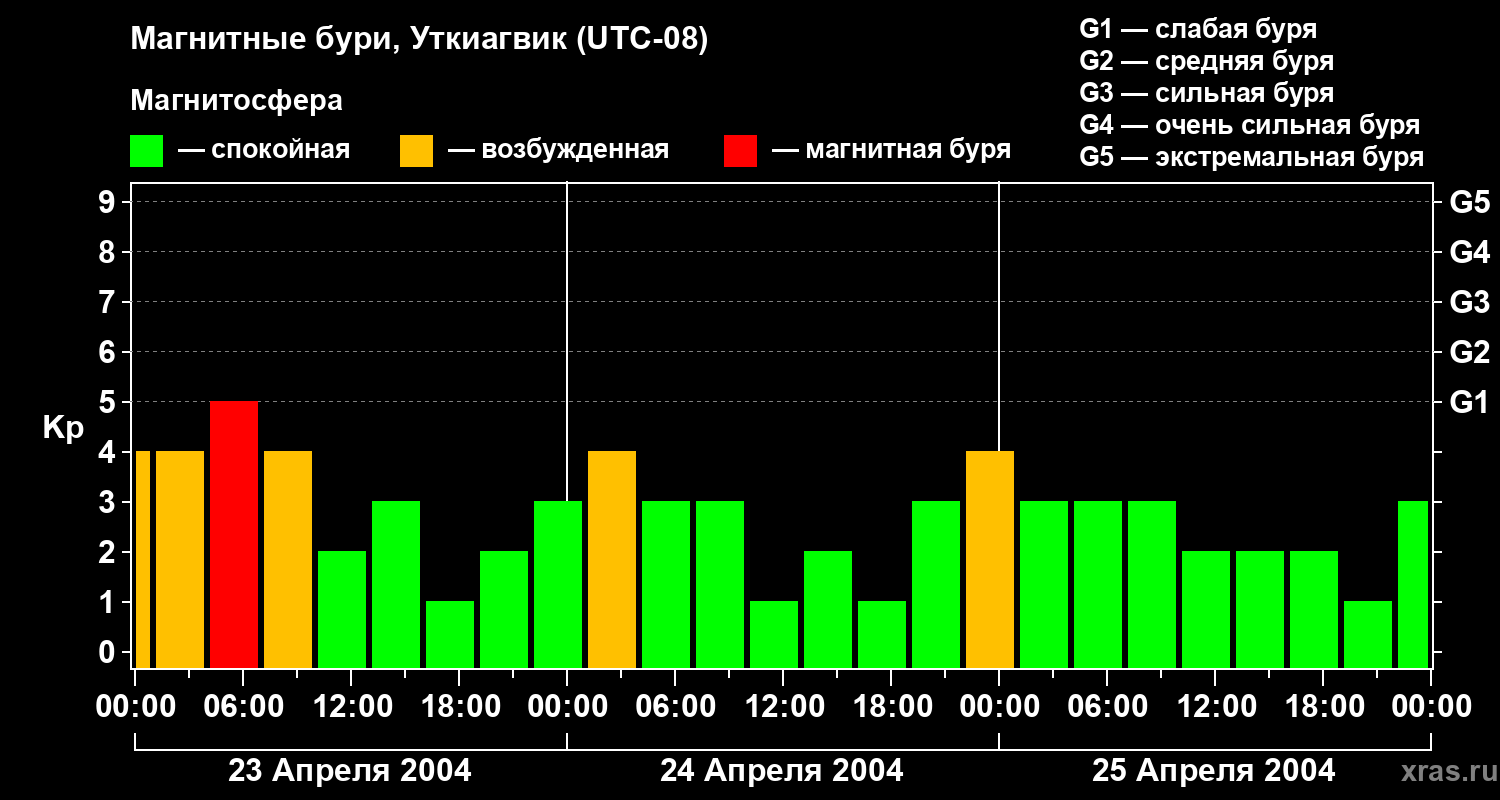 Магнитные бури в Уткиагвике — 25 апреля 2004 года