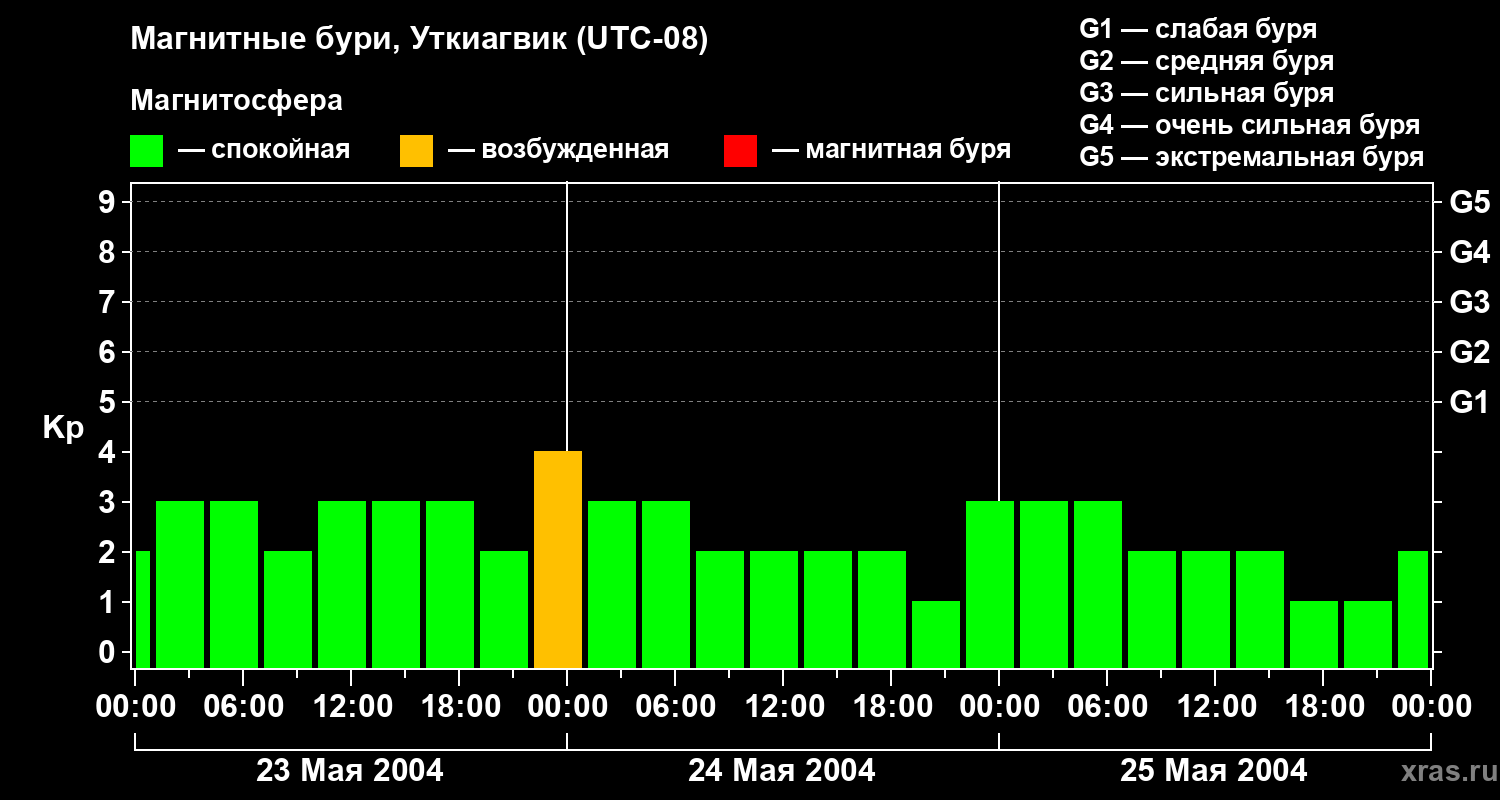 Магнитные бури в Уткиагвике — 25 мая 2004 года