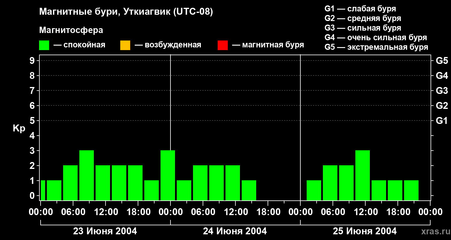 Магнитные бури в Уткиагвике — 25 июня 2004 года