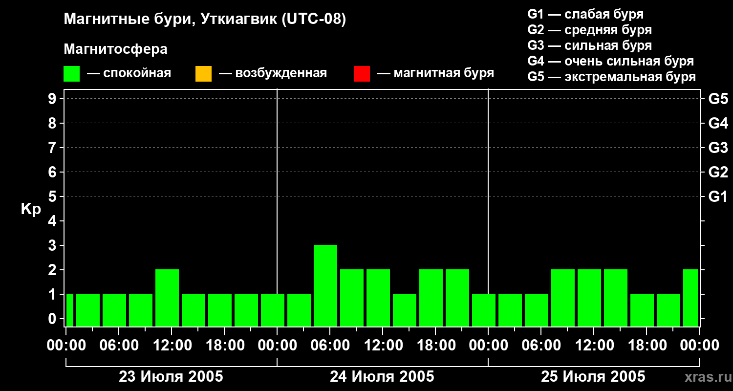 Магнитные бури в Уткиагвике — 25 июля 2005 года