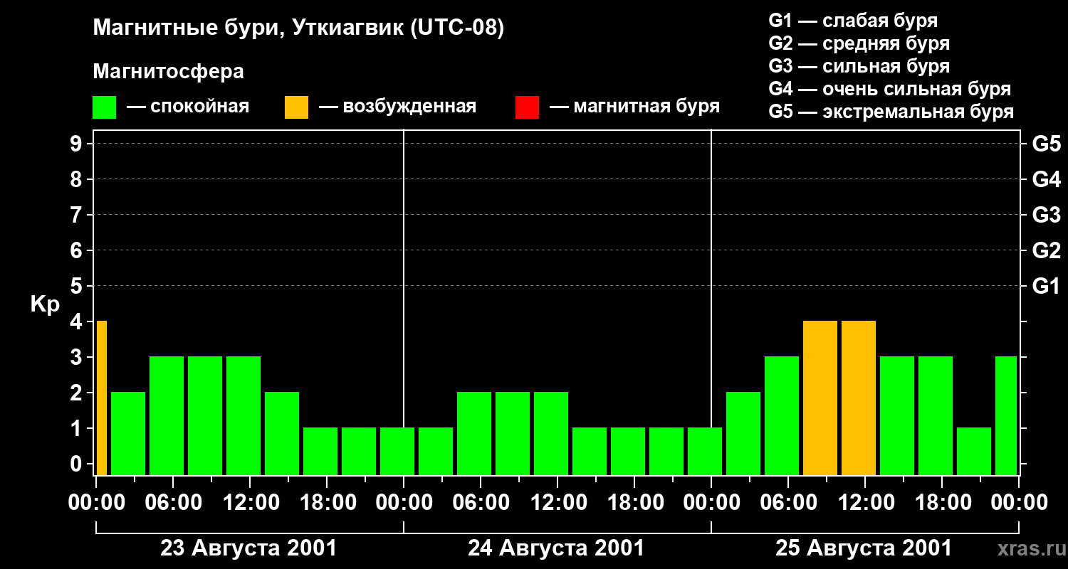 Магнитные бури в Уткиагвике — 25 августа 2001 года