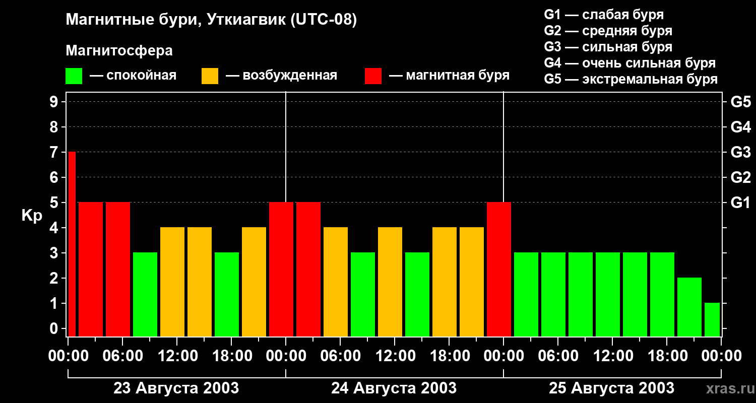 Магнитные бури в Уткиагвике — 25 августа 2003 года