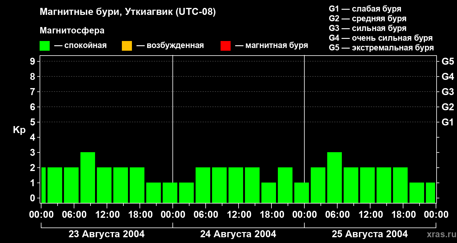 Магнитные бури в Уткиагвике — 25 августа 2004 года