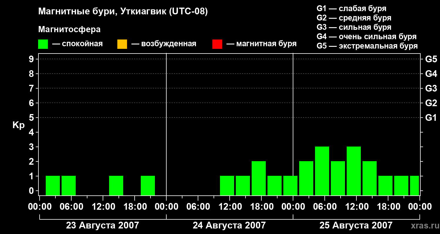 Магнитные бури в Уткиагвике — 25 августа 2007 года