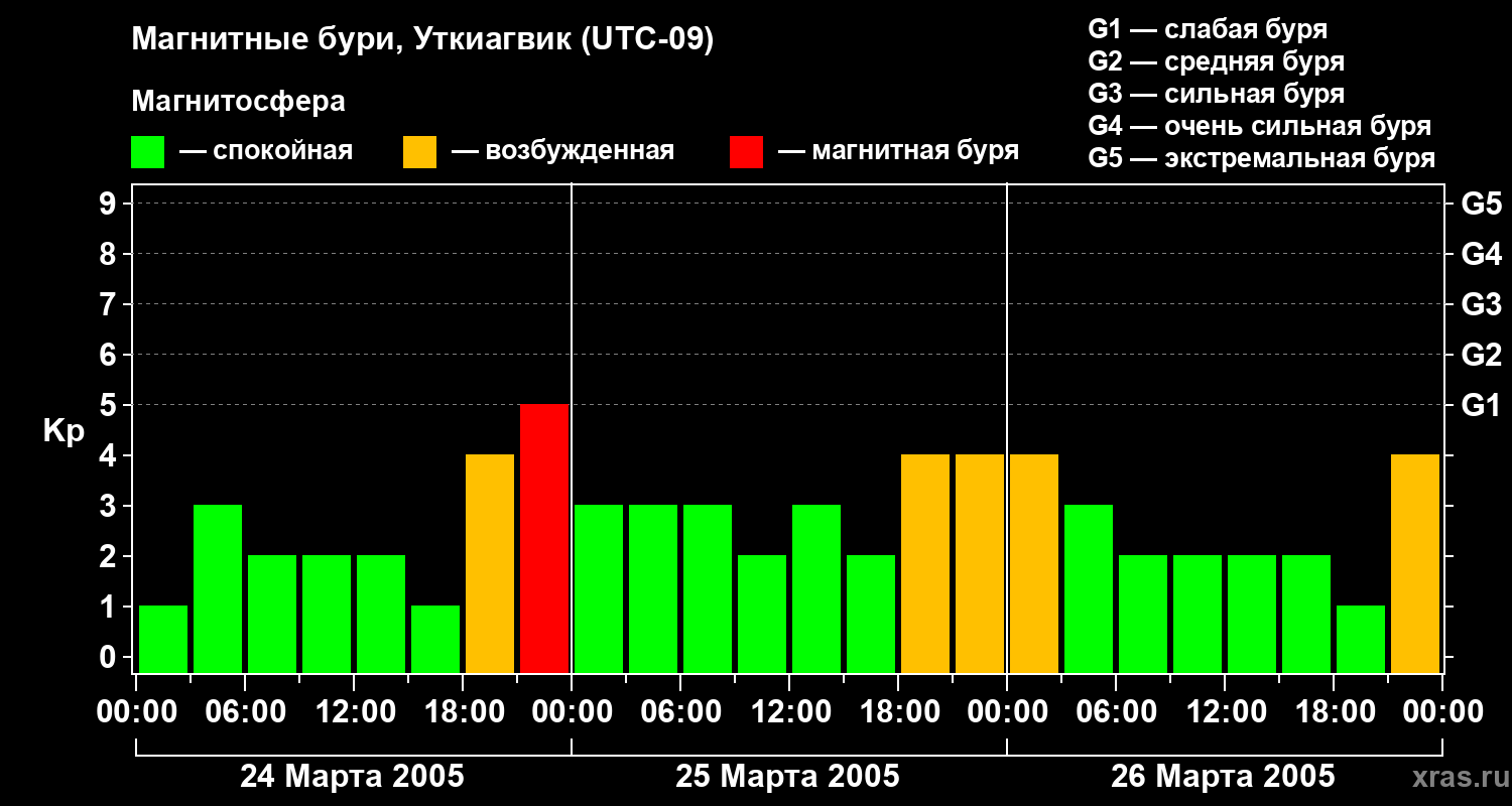 Магнитные бури в Уткиагвике — 26 марта 2005 года
