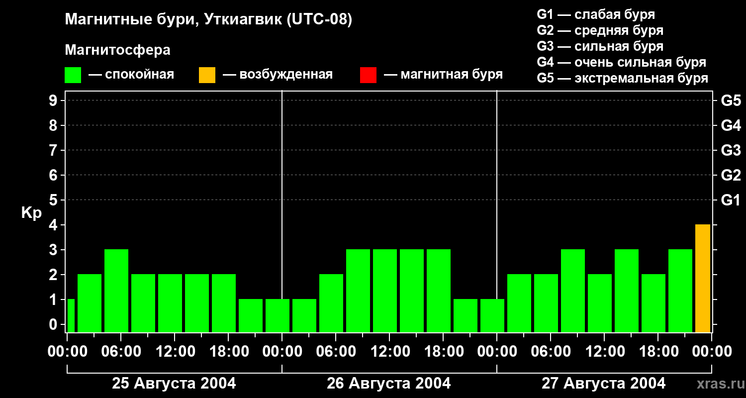 Магнитные бури в Уткиагвике — 27 августа 2004 года