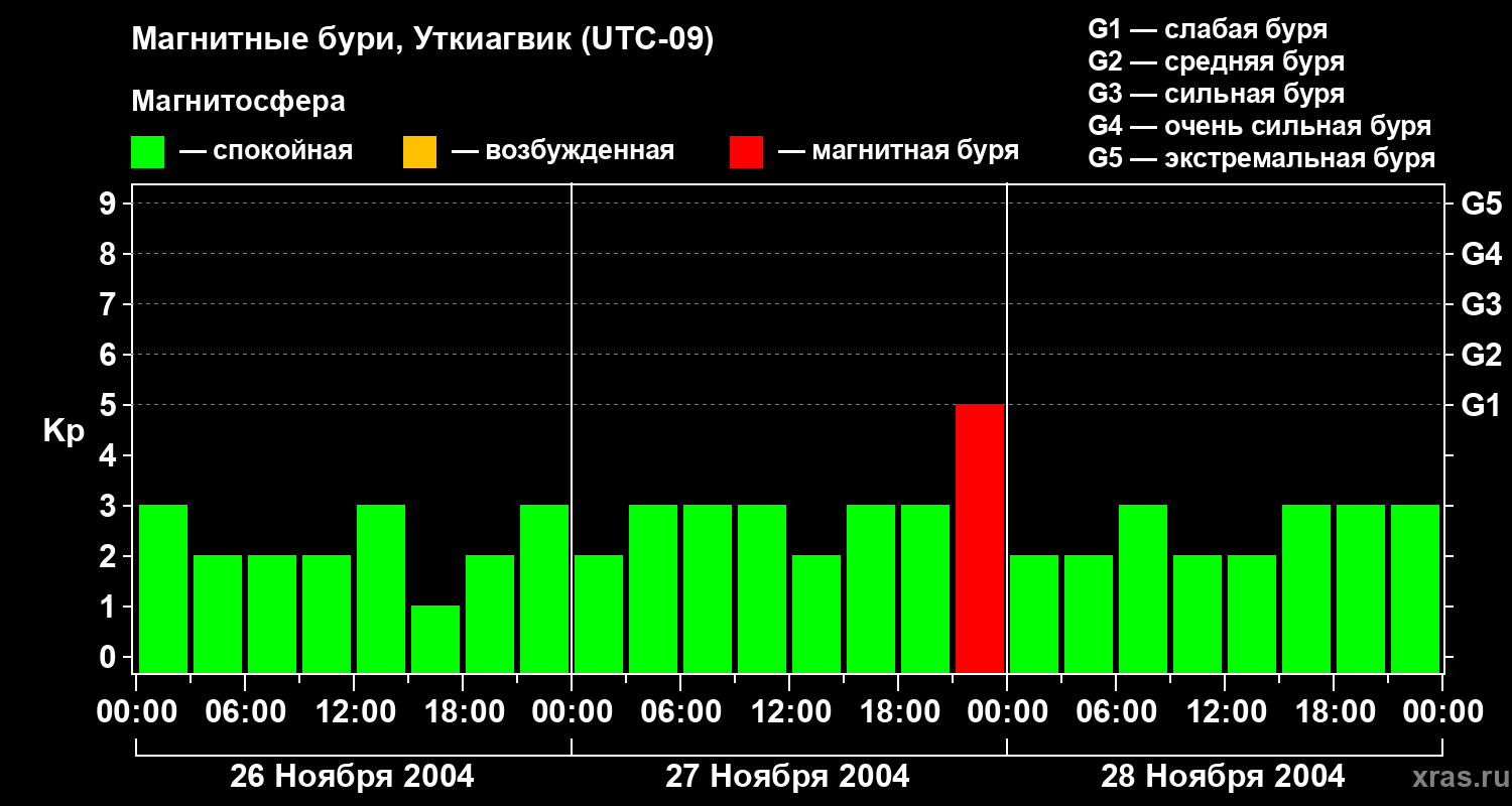 Магнитные бури в Уткиагвике — 28 ноября 2004 года
