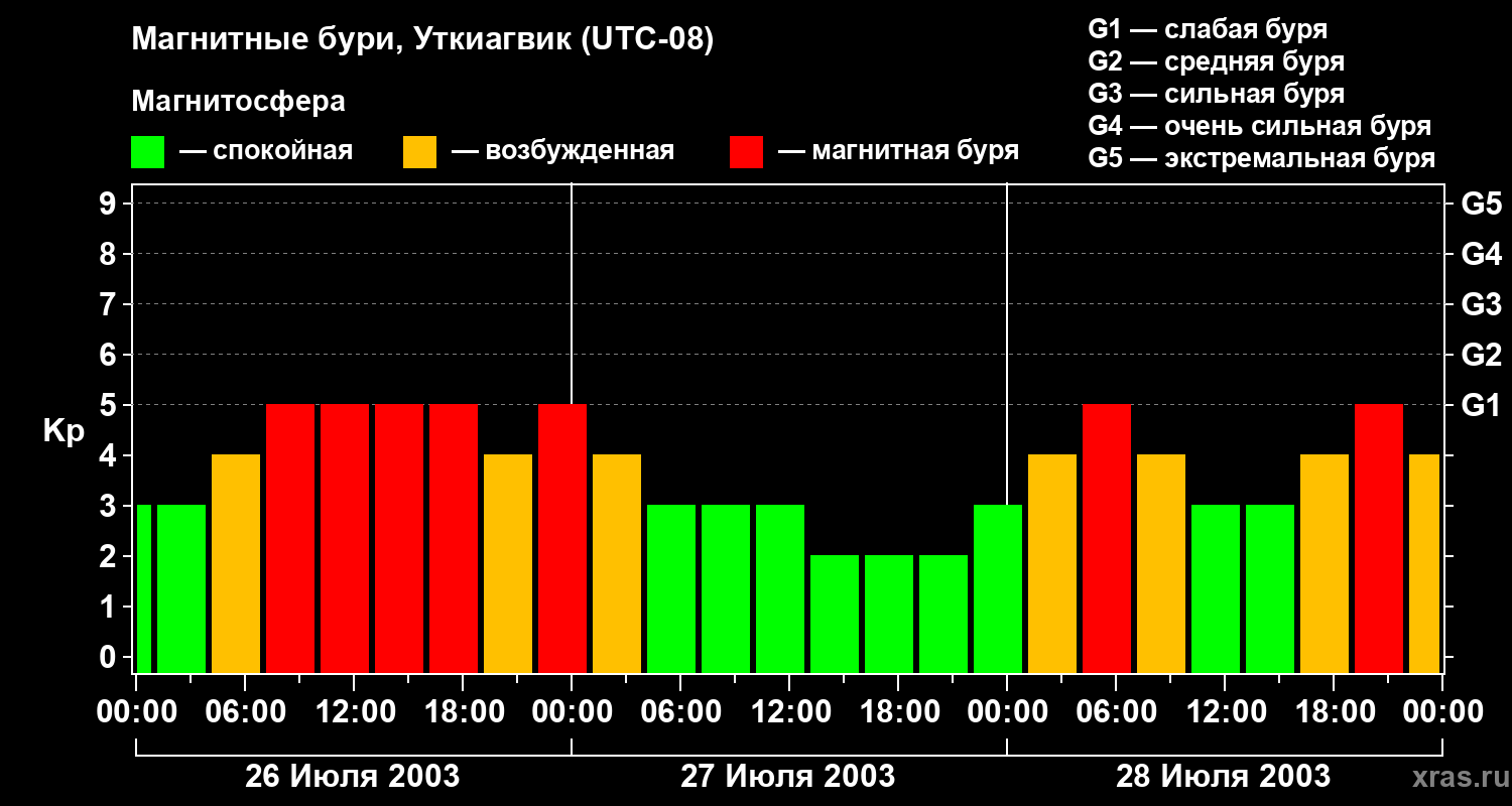 Магнитные бури в Уткиагвике — 28 июля 2003 года
