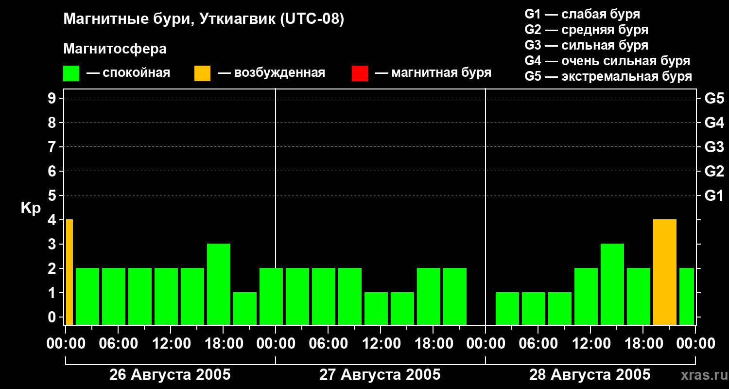 Магнитные бури в Уткиагвике — 28 августа 2005 года