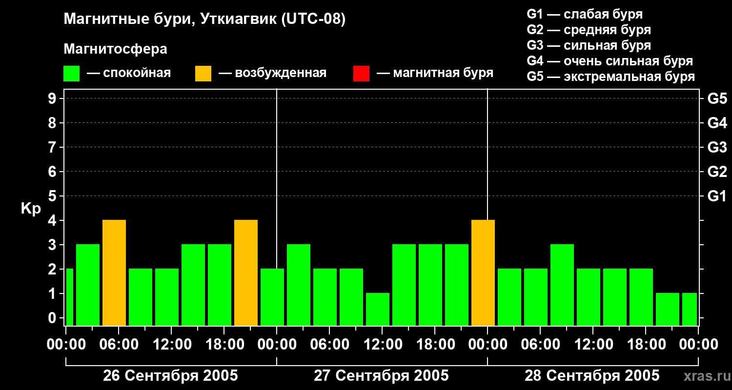Магнитные бури в Уткиагвике — 28 сентября 2005 года