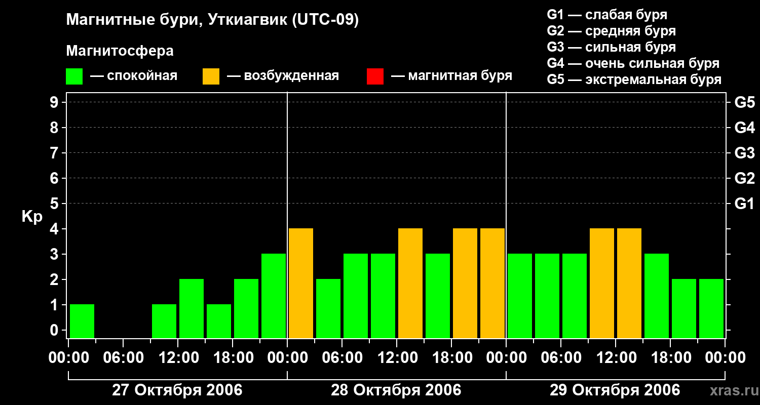 Магнитные бури в Уткиагвике 29 октября 2006 года