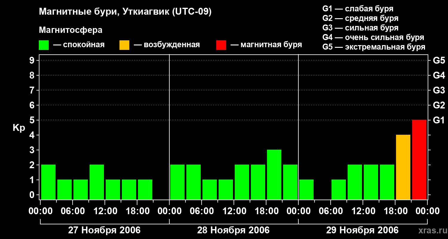 Магнитные бури в Уткиагвике — 29 ноября 2006 года