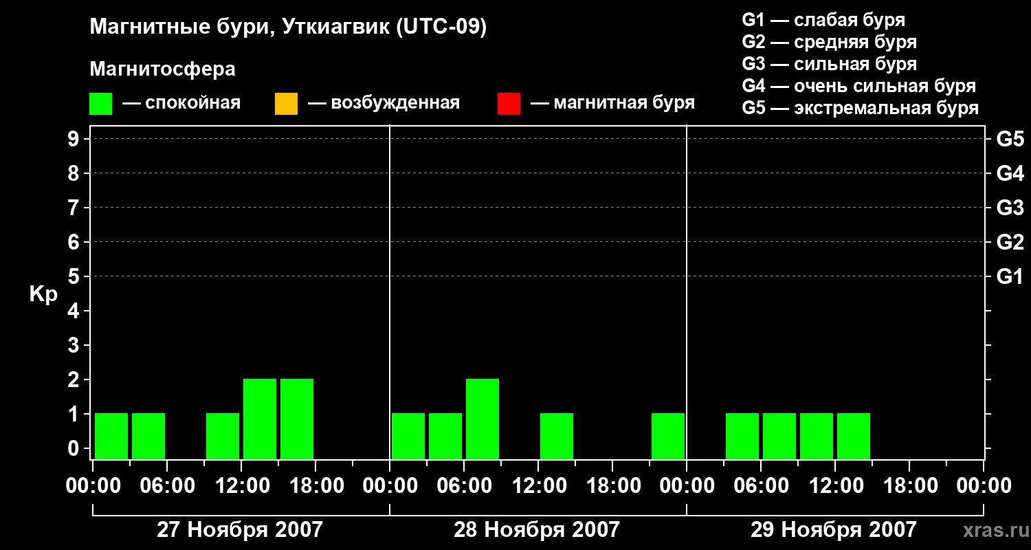 Магнитные бури в Уткиагвике — 29 ноября 2007 года