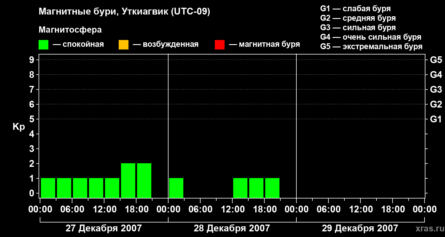 Магнитные бури в Уткиагвике — 29 декабря 2007 года