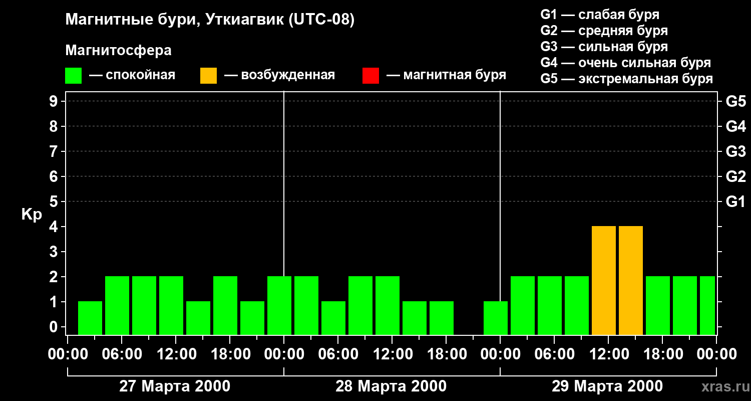 Магнитные бури в Уткиагвике — 29 марта 2000 года