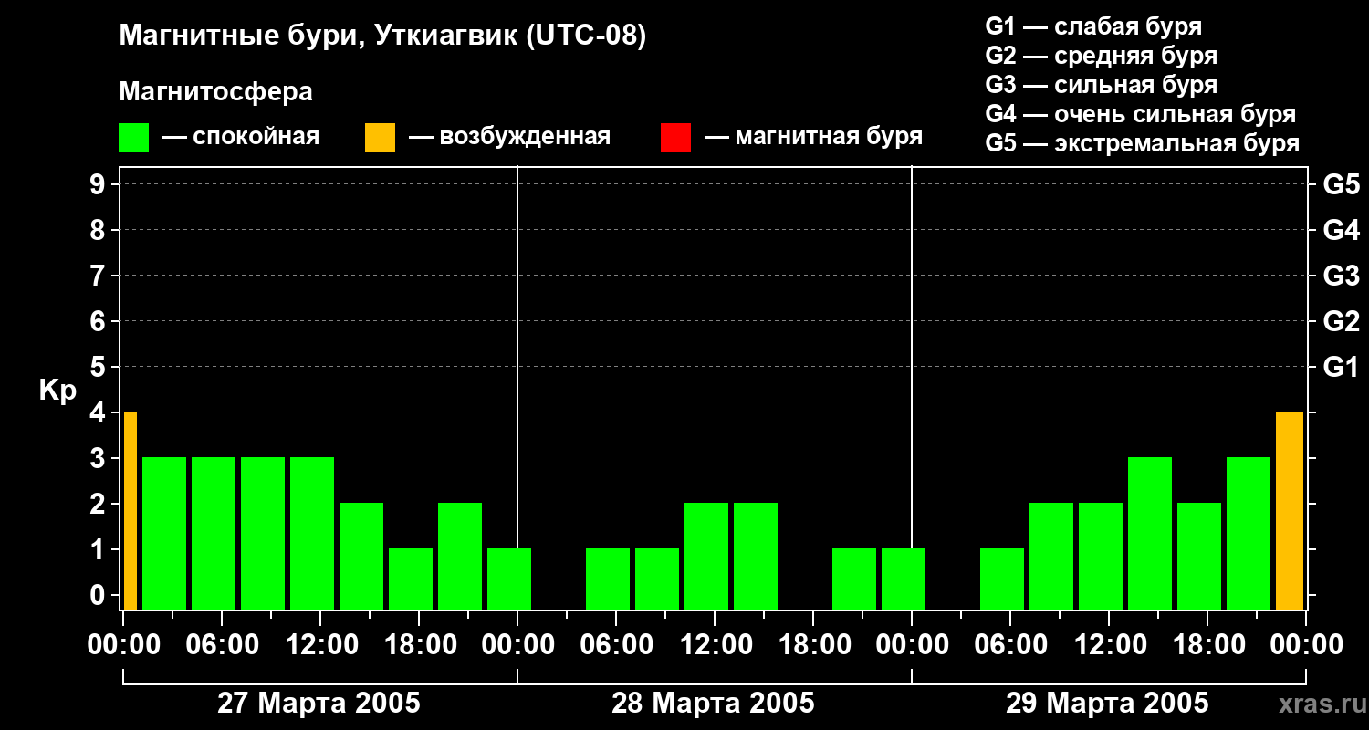 Магнитные бури в Уткиагвике — 29 марта 2005 года