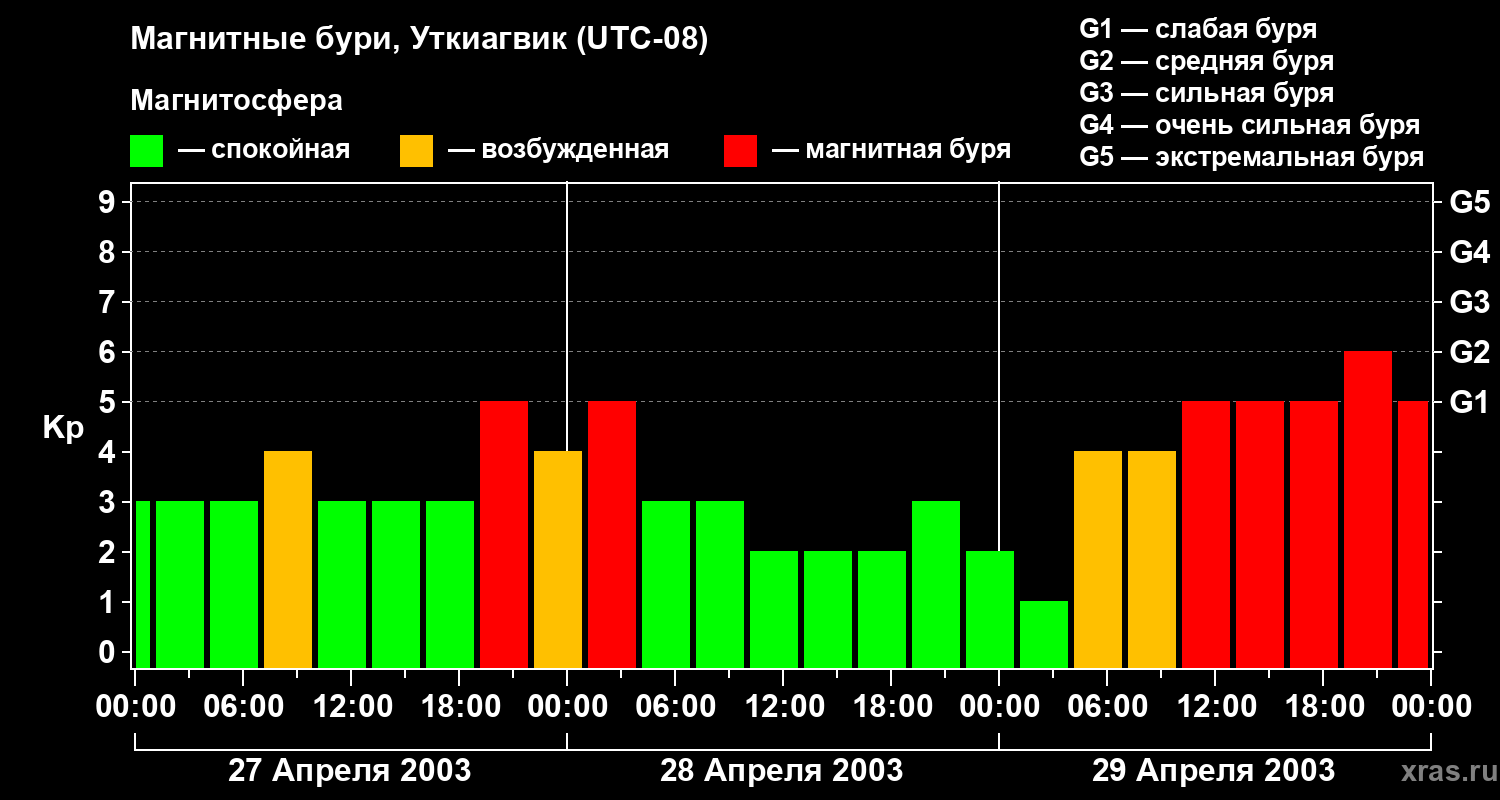 Магнитные бури в Уткиагвике — 29 апреля 2003 года