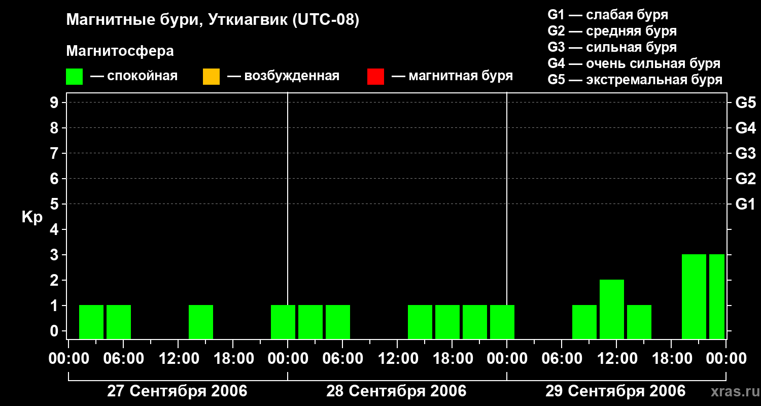 Магнитные бури в Уткиагвике — 29 сентября 2006 года