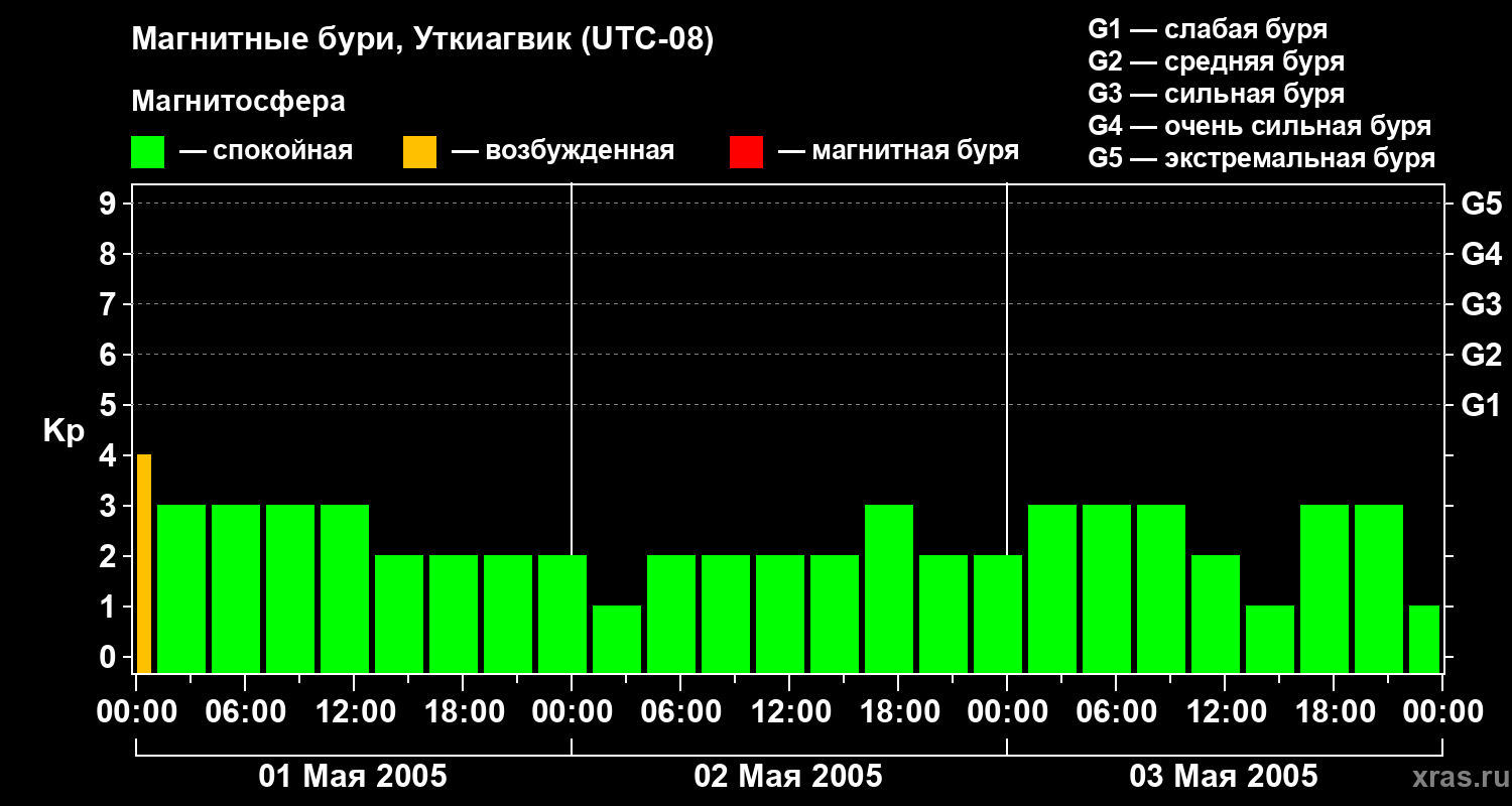 Магнитные бури в Уткиагвике — 3 мая 2005 года