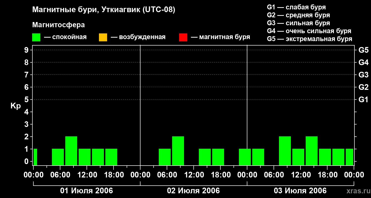 Магнитные бури в Уткиагвике — 3 июля 2006 года