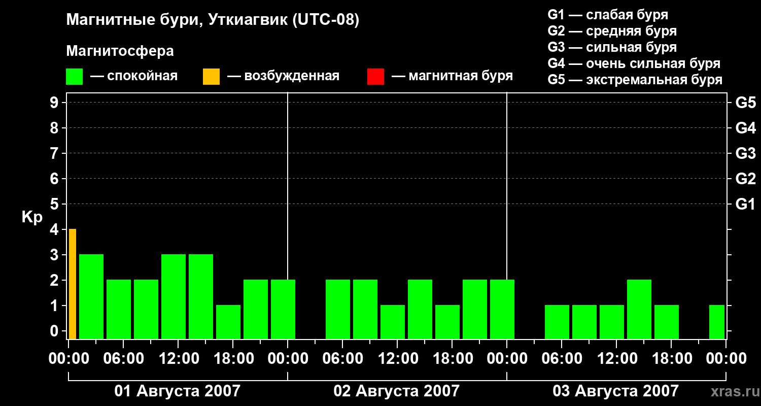 Магнитные бури в Уткиагвике — 3 августа 2007 года