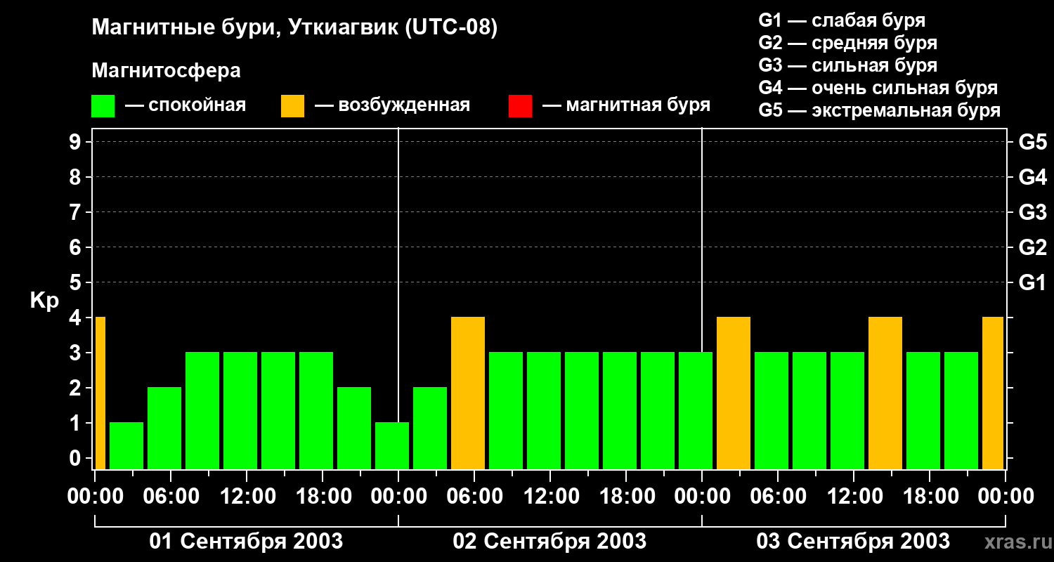 Магнитные бури в Уткиагвике — 3 сентября 2003 года