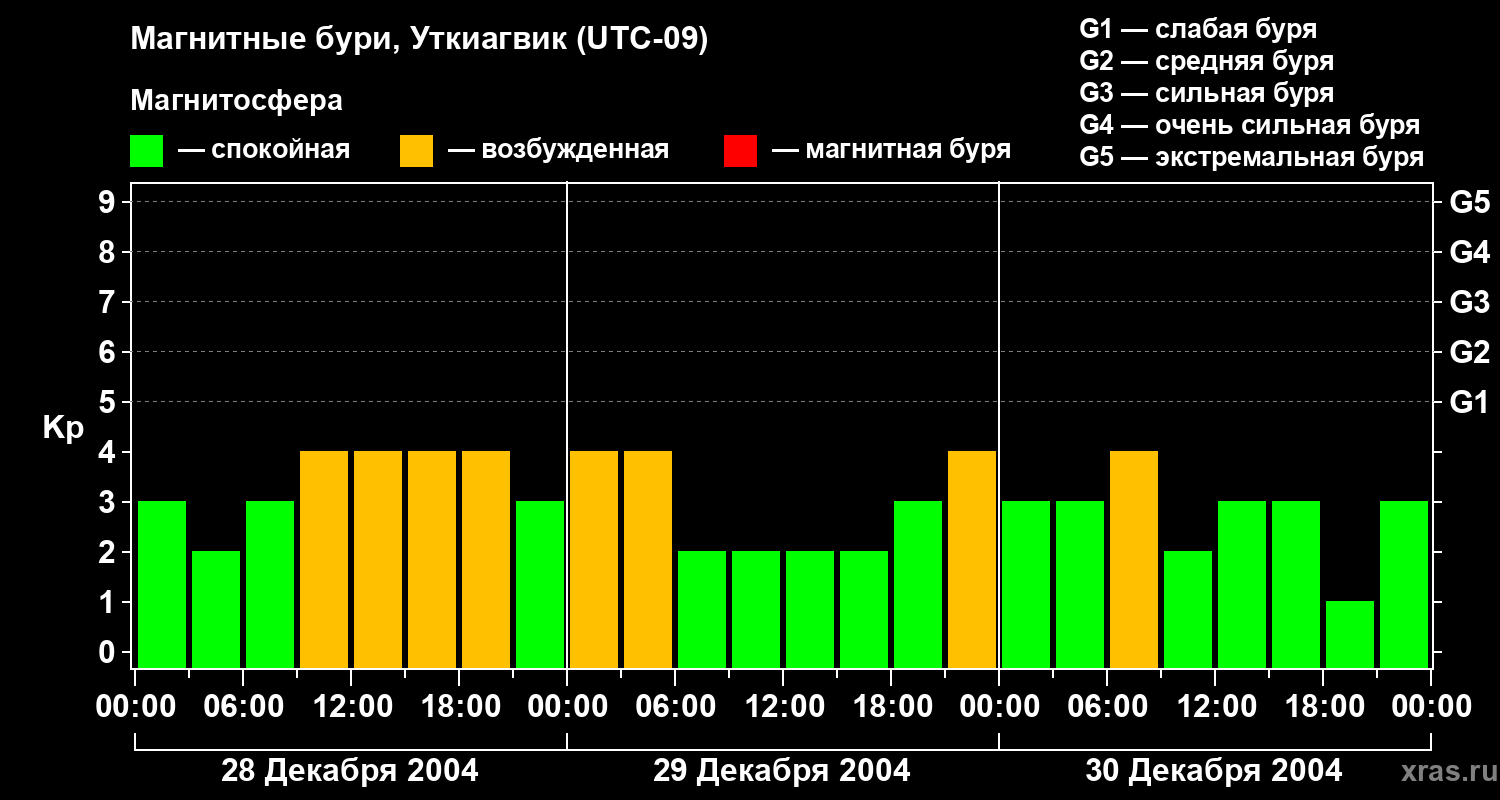 Магнитные бури в Уткиагвике — 30 декабря 2004 года