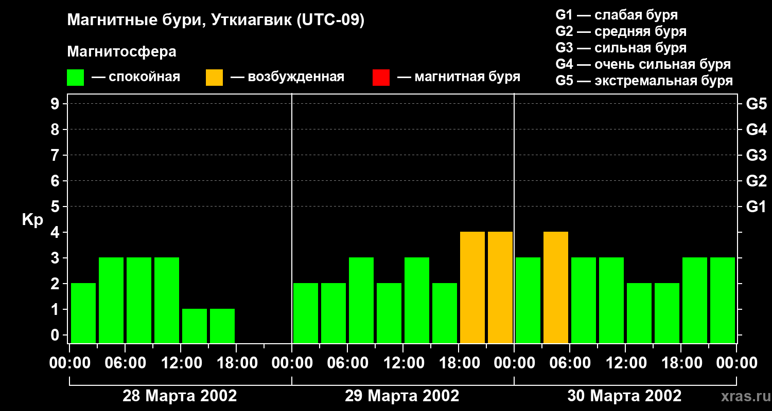 Магнитные бури в Уткиагвике — 30 марта 2002 года