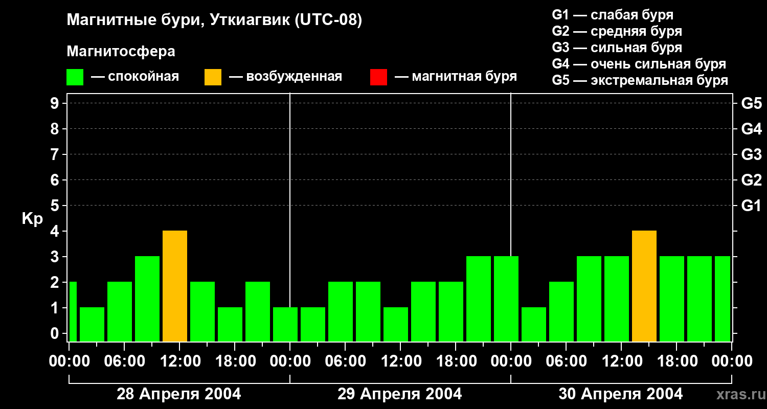 Магнитные бури в Уткиагвике — 30 апреля 2004 года