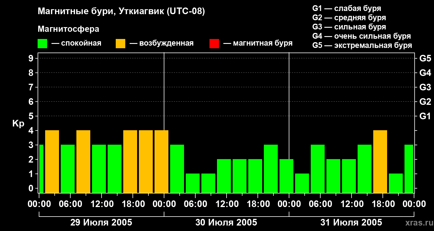 Магнитные бури в Уткиагвике — 31 июля 2005 года