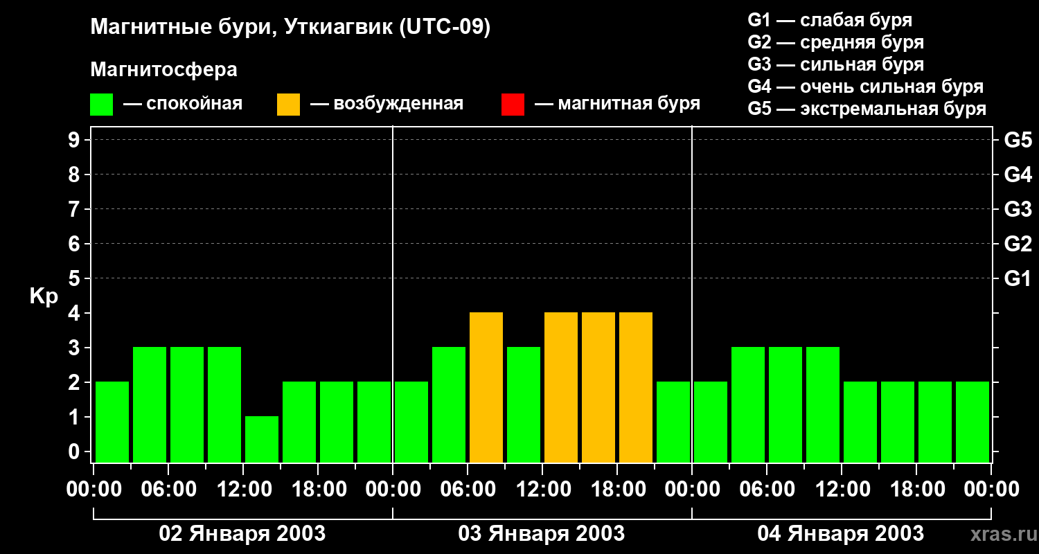 Магнитные бури в Уткиагвике — 4 января 2003 года